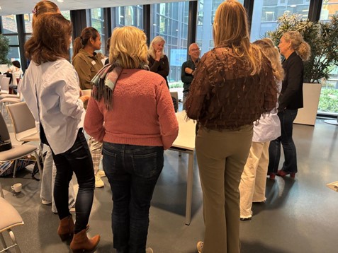 We bespraken de situatie dat externe partners die je nodig hebt voor een mantelzorgvriendelijke aanpak niet zomaar willen aansluiten of mee willen werken. Het gesprek leverde veel nieuwe inspiratie en energie om verder met dit onderwerp aan de slag te gaan. De dynamiek in de groep en deelname van twee mantelzorgers hielp hierbij.